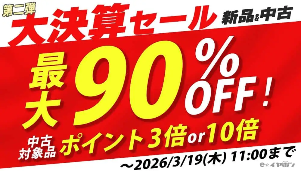 e☆イヤホンで大決算セールが開催中|新品最大90%OFF・中古ポイント最大10倍【3/19まで】