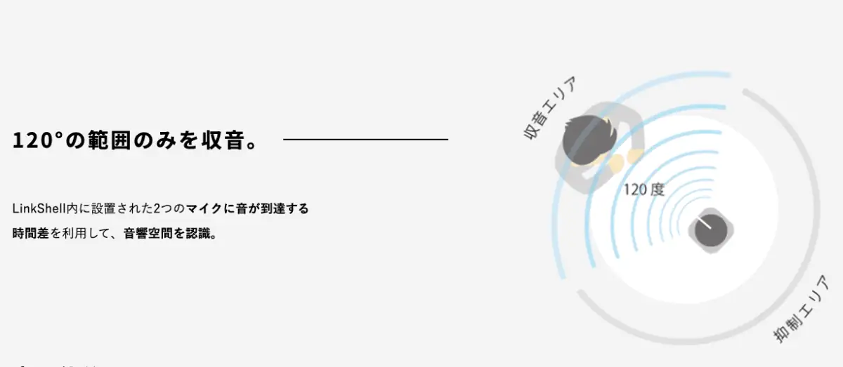 また、120°範囲にいても声以外の雑音を取り除いてくれるみたいですね。