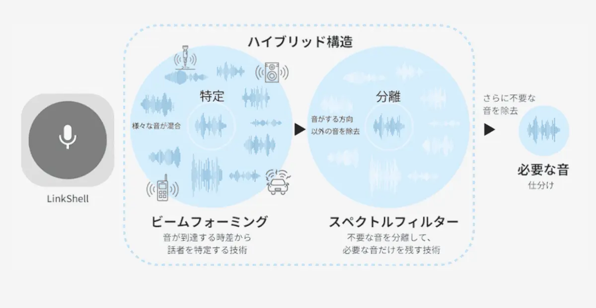 それだけではなく、ビームフォーミング技術っていう音の到達する時差から話している人を特定する技術と、スペクトルフィルターっていう不要な音を分離して必要な音だけを残す技術を2つ掛け合わせて、必要な音だけを仕分けるような技術も取り入れているみたいなんですよ。