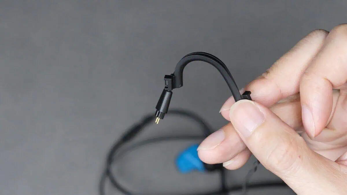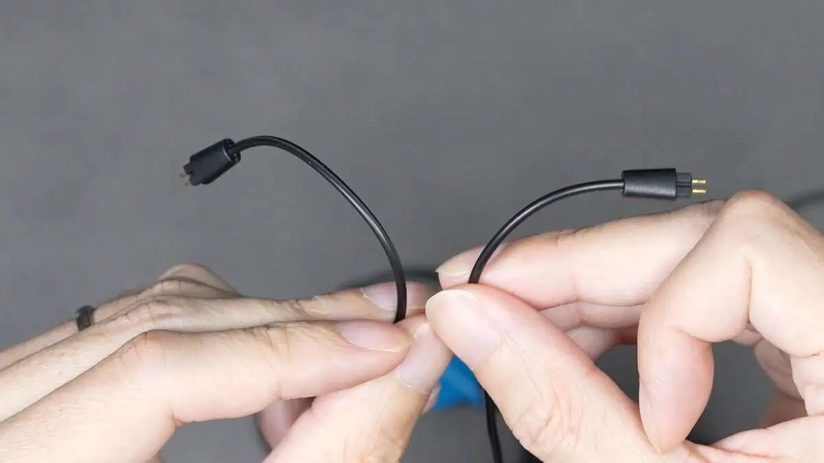 ケーブルは着脱可能で、コネクタは2PIN(φ0.78)に対応。汎用性が高い規格なので、将来的にリケーブルや断線時の交換もしやすいです。