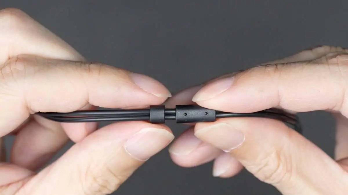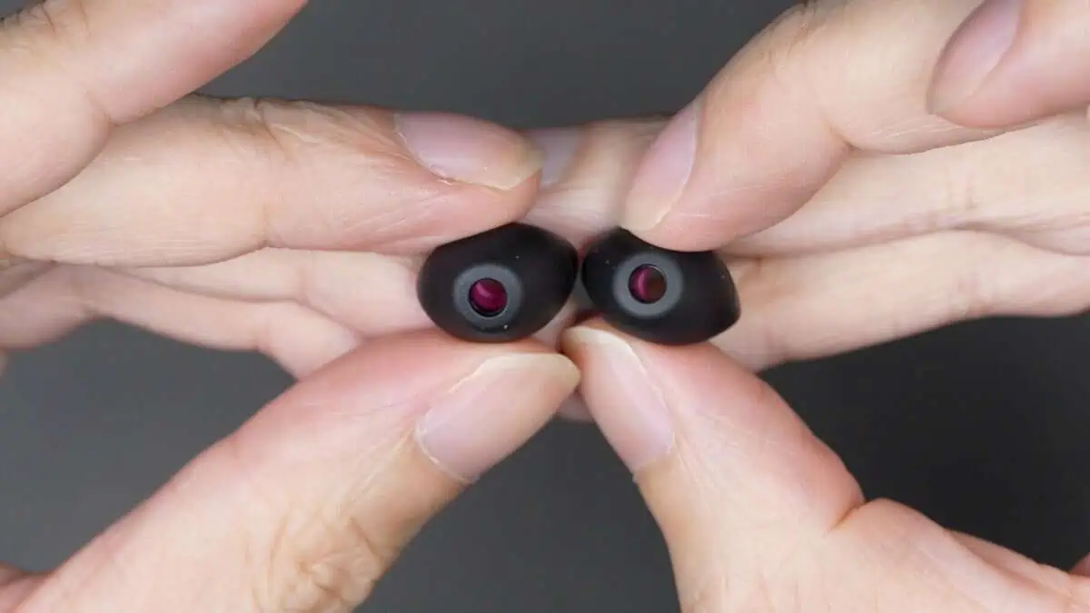 耳掛け部は形状固定型ではなくダランと下に這わせるように装着するタイプ。もし装着感が安定しない場合は、付属のイヤーフックを使ってあげると良いですよ。