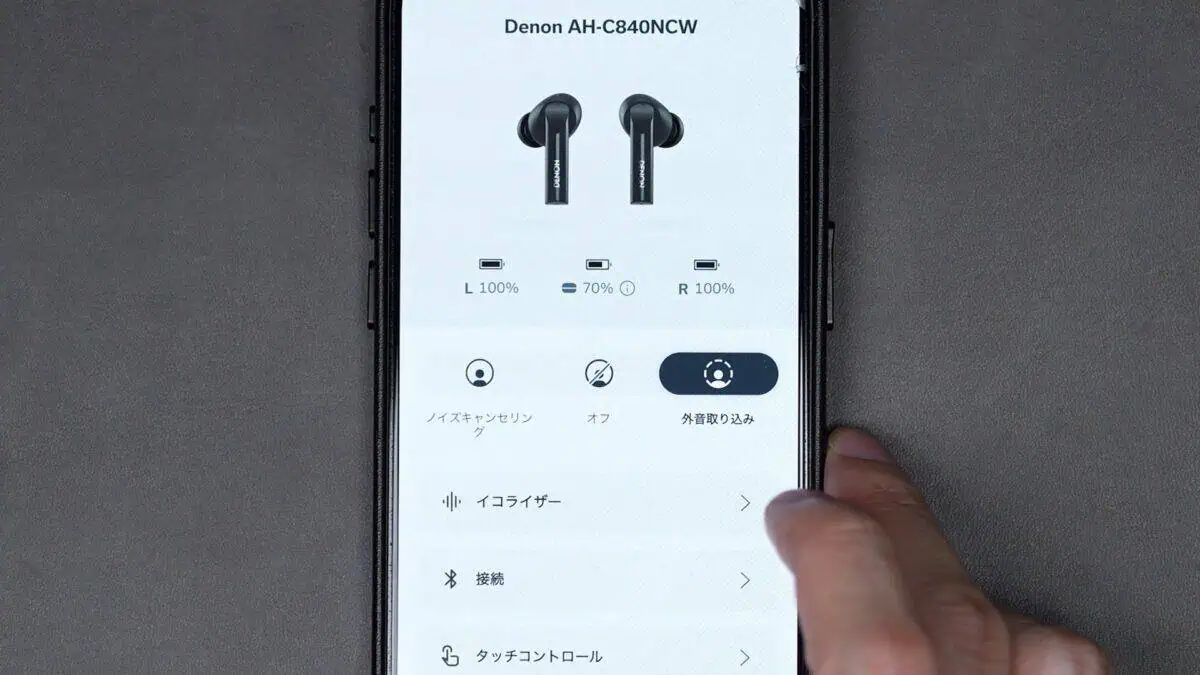 AH-C840NCWのみ外音取り込みに対応していますが、あまり自然には聞こえないですね。