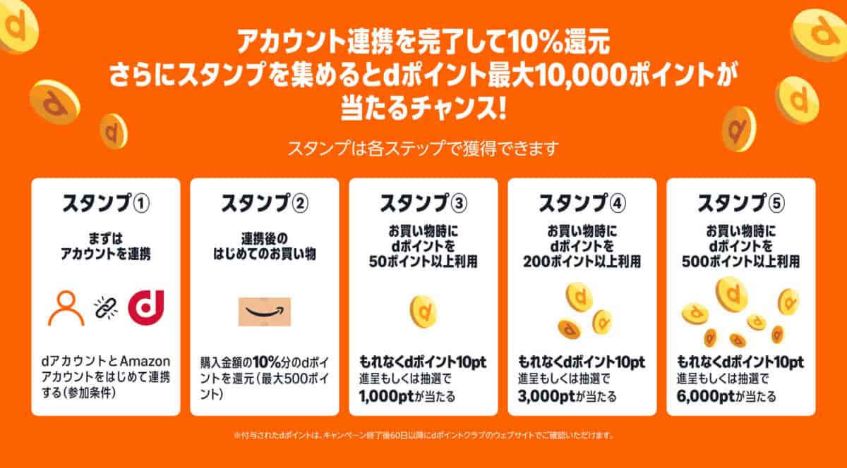 期間中にdポイントスタンプラリーにエントリーして、スタンプを集めると、最大10000ポイントのdポイントが当たるキャンペーンも実施中です。