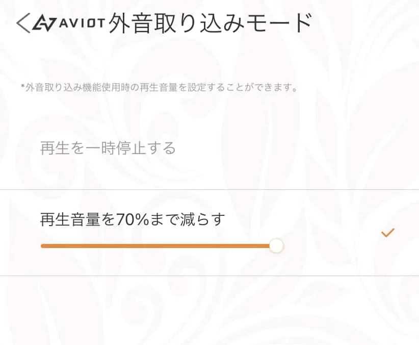 アプリに対応するまでは外音取り込みモードにした時の音楽の停止や音量の調整はできませんでしたが、アプリ対応で少し便利になりした。