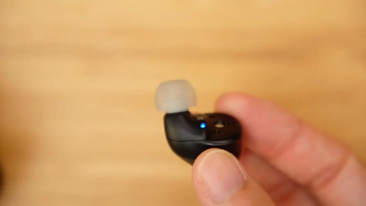 ただ、ペアリングモードの移行がややこしい印象で、『イヤホン本体を取り出してLEDが青く点滅している間にLorRを長押し』という初見殺しのような移行方法で、説明書をみても初めはよくわかりませんでした。