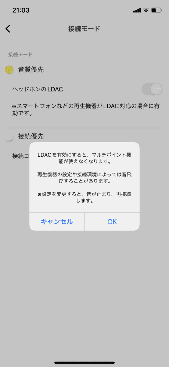 ちなみに最後に大事なことを伝えますが、LDACとマルチポイントは併用して使えないのでご注意ください。