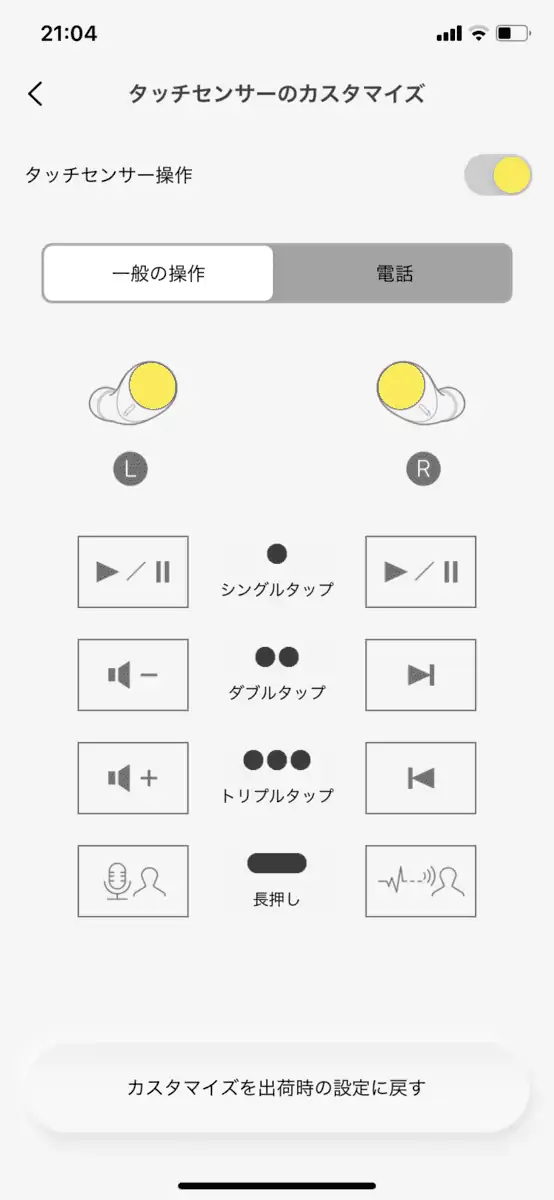 WF-1000XM4やTour Pro+ TWSのように『再生コントロール』『外音コントロール』など大枠の設定しかできませんでしたが、EAH-AZ60なら個別操作ごとに設定できるものポイントが高いですね。