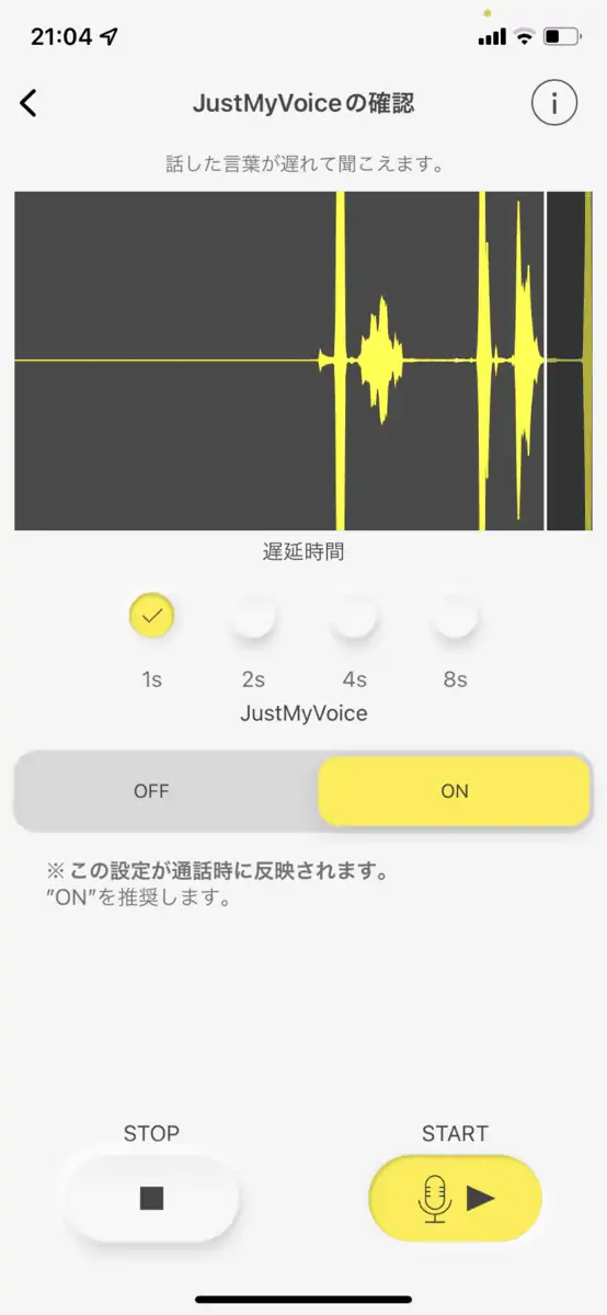 ユニークだと思った機能が『JustMyVoiceの確認』で、自分がEAH-AZ60のマイクに対して発した声を1〜8秒後にフィードバックする機能が備わっています。