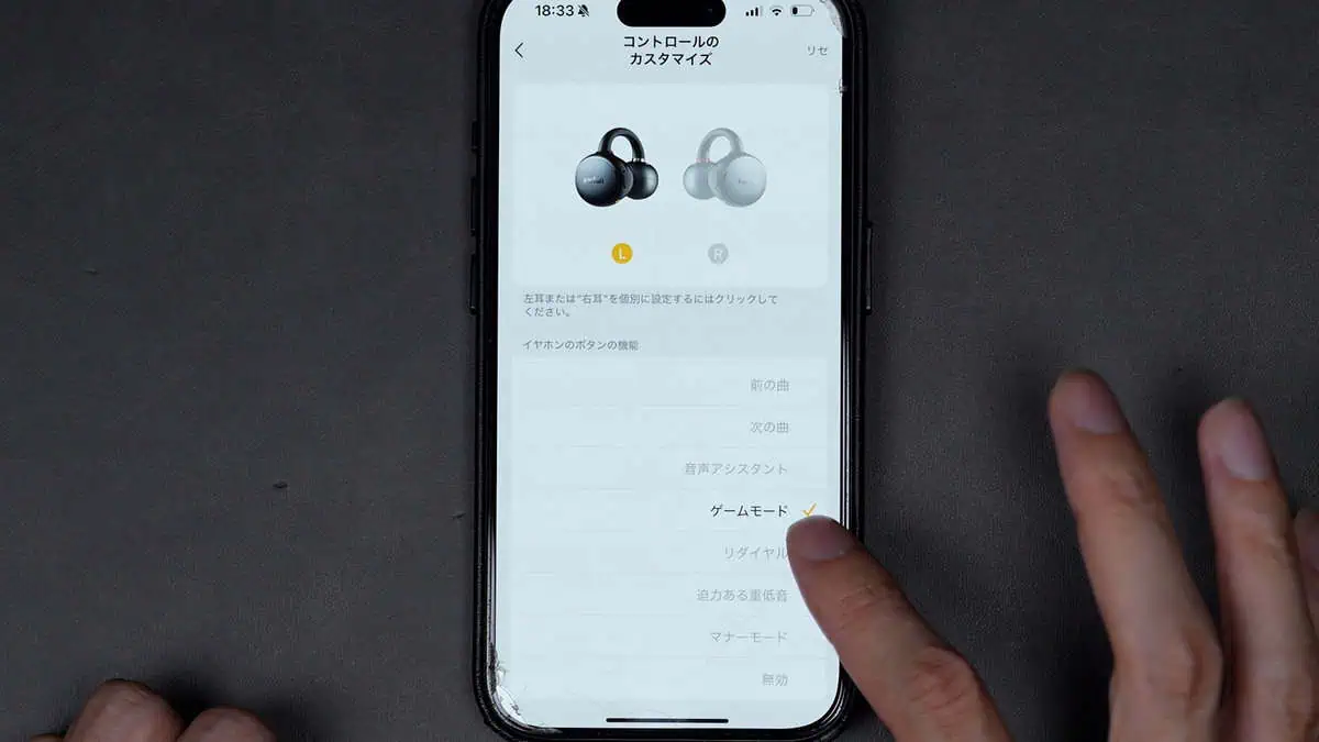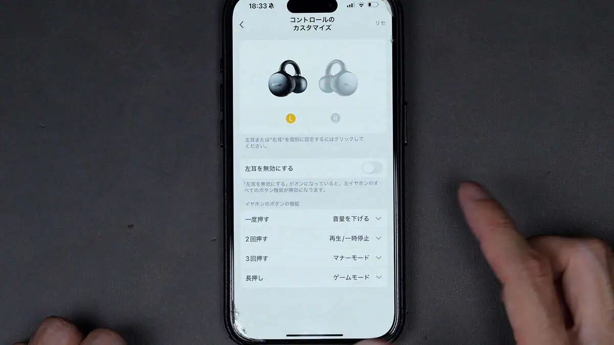 ここからアプリで、左右共に操作方法のカスタマイズも自由に設定できます。