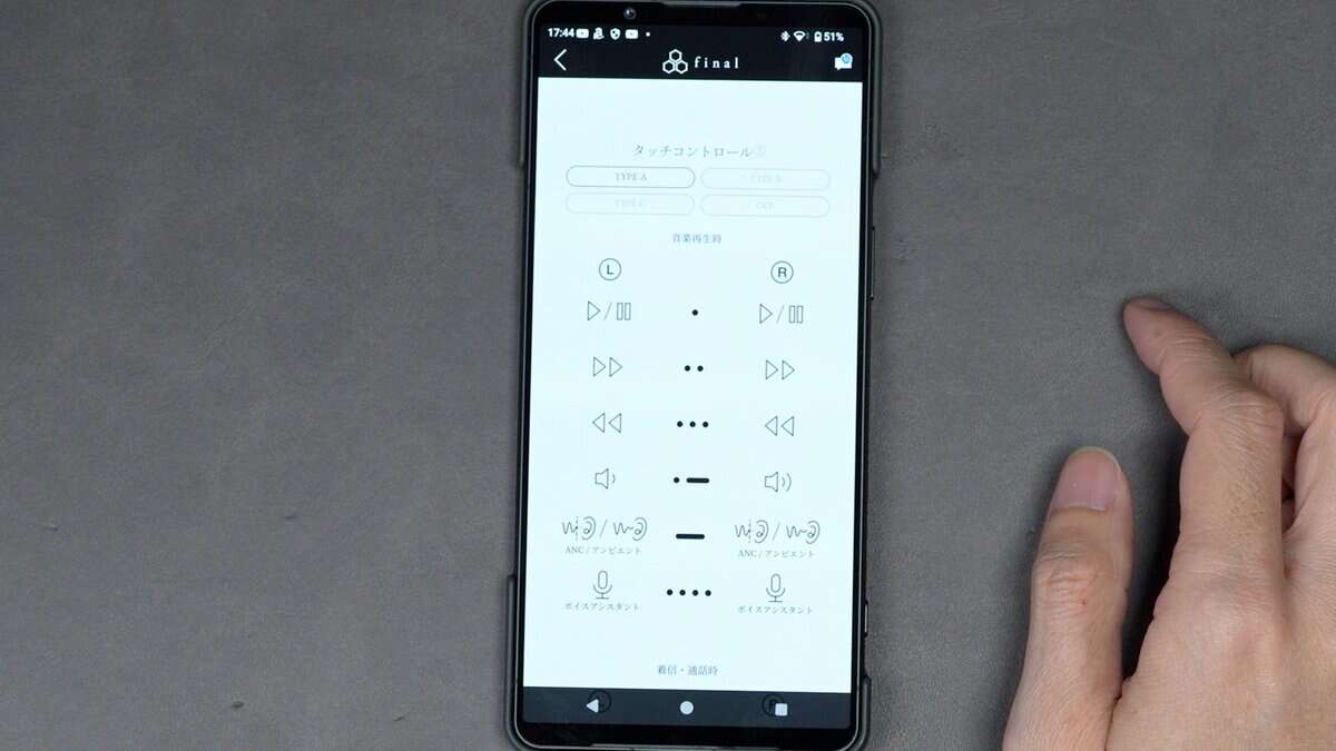 アプリでもカスタマイズはできますが、「Type A」「Type B」「Type C」と一括で操作が変更されてしまう仕様です。自由度は低め。