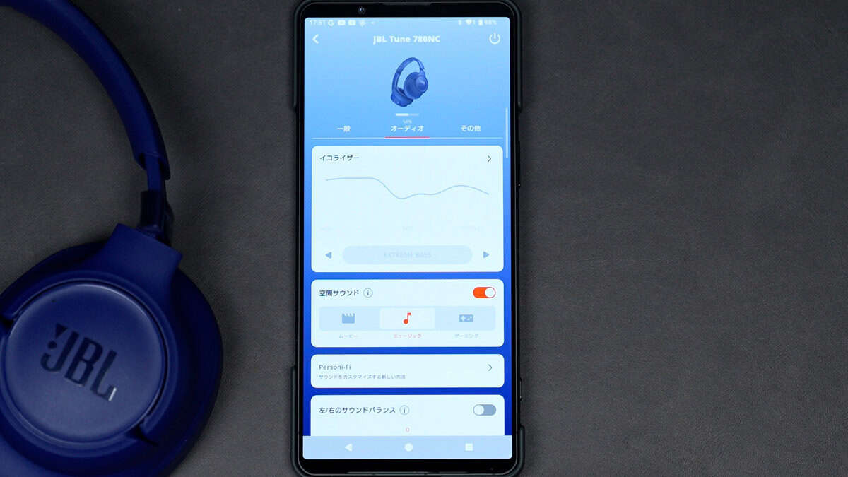 JBLの空間サウンドは優秀なので、コンテンツに合わせて使い分けてみてください。ちなみに本体操作のみで空間サウンドをON・OFFにもできます。