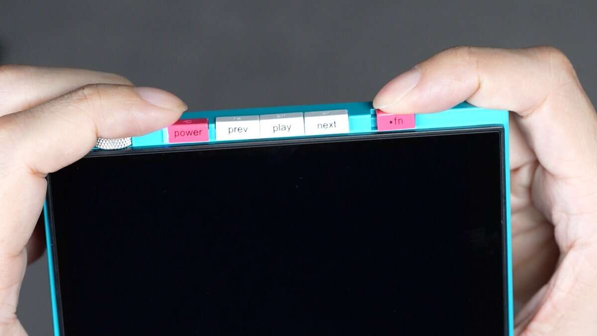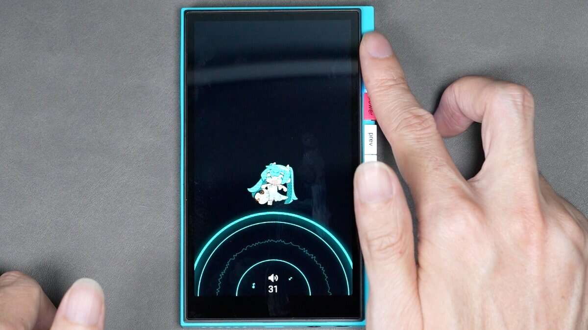 初音ミクEditionでは、ミクをイメージしたペールブルーグリーン系の本体カラーに、差し色でピンクレッドの物理ボタンを配置。