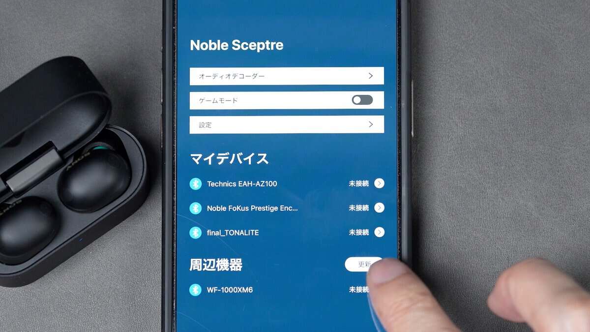 今回はソニーWF-1000XM6を例に、実際にSceptreを使って接続していきましょう。