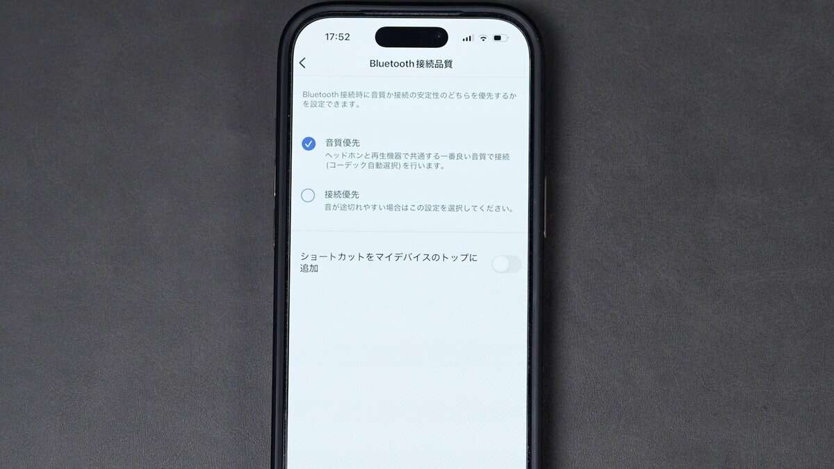 aptX Adaptiveも「高音質」と「安定」の2モードから選択可能です。