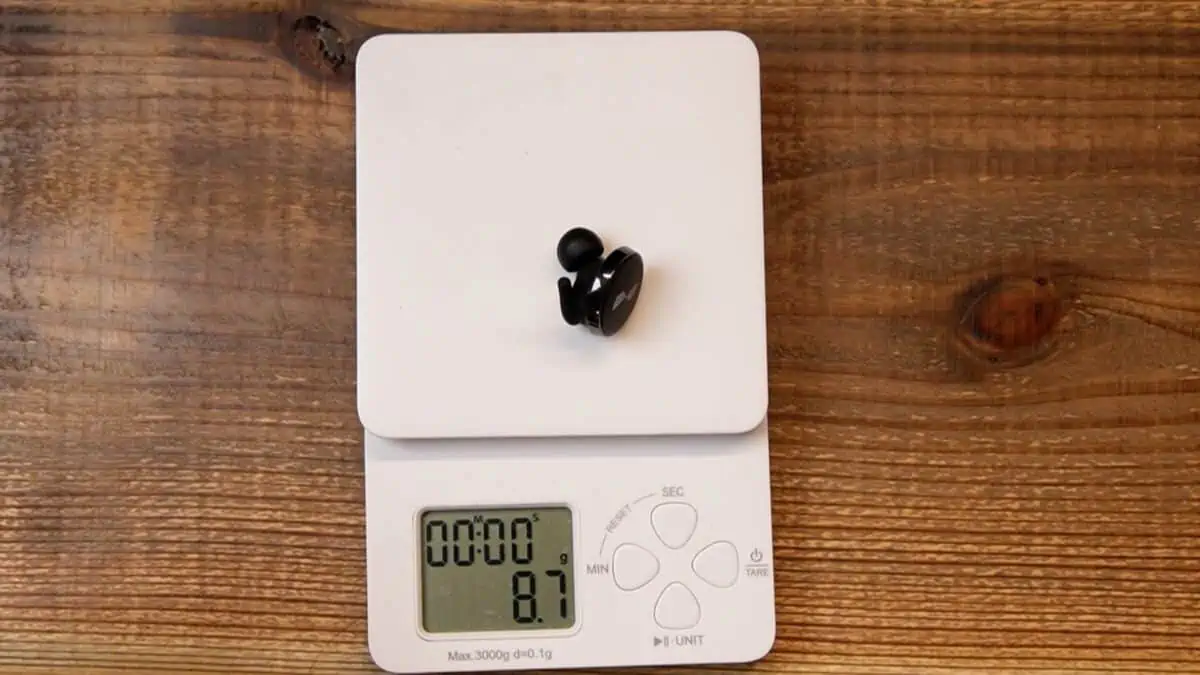 最後に重さですが、総重量は71.6g、本体片耳の重量は8.7gです。