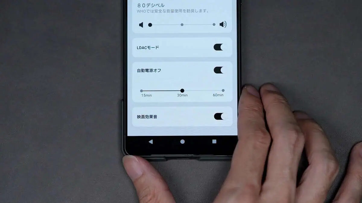 ただ、ノイズキャンセリングOFFをカットしてノイズキャンセリング↔︎外音取り込みのみの切り替え設定にすることはできません。アプリでも設定を変更できませんでした。