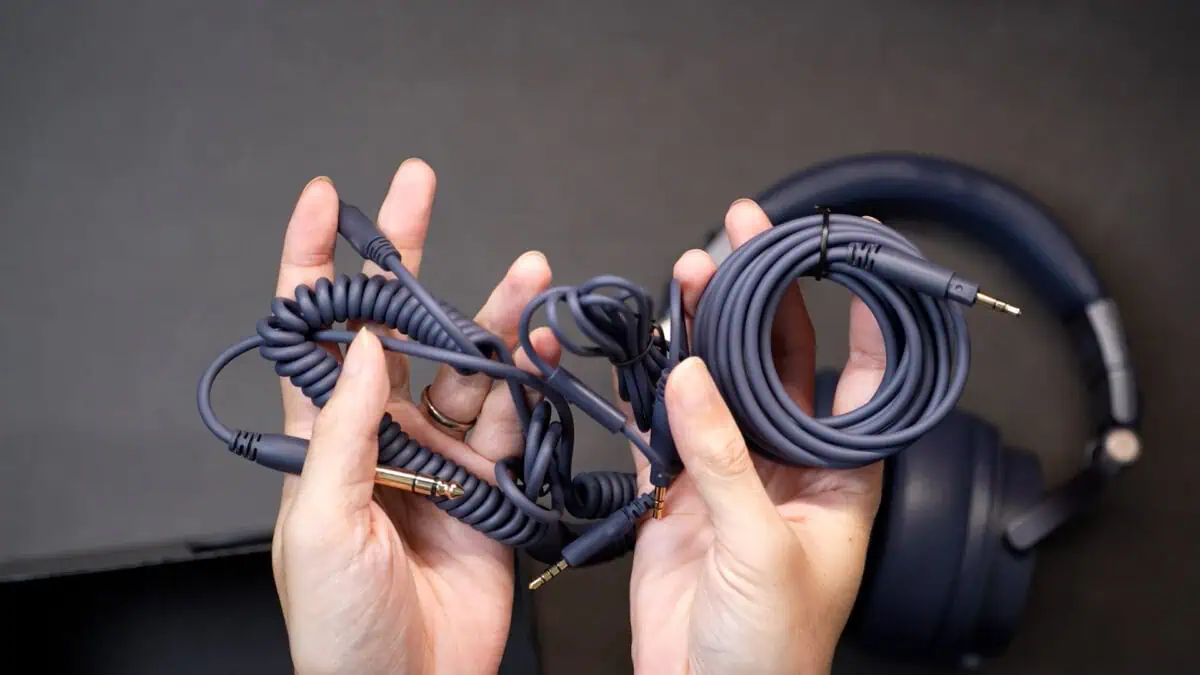 また、ヘッドホンの両側に6.35mmと3.5mmのジャック2つ搭載しており、付属のケーブルを両方に挿し込むと異なる音源からの音を同時に再生できます。