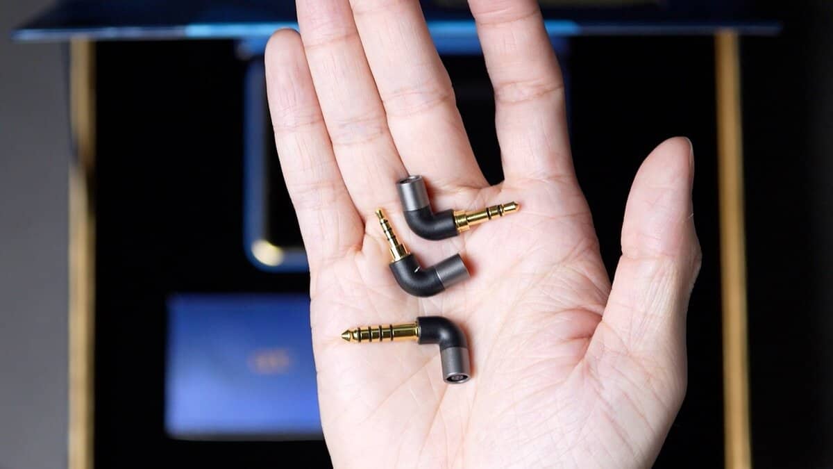 プラグ部分はL字型の3in1マルチプラグ。変換プラグをカチッと差し替えるだけで3.5mm / 2.5mm / 4.4mmに切り替えられます。
