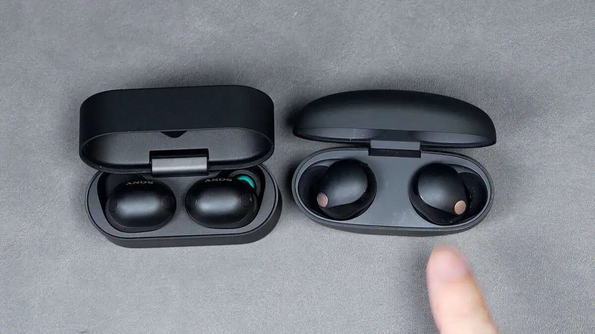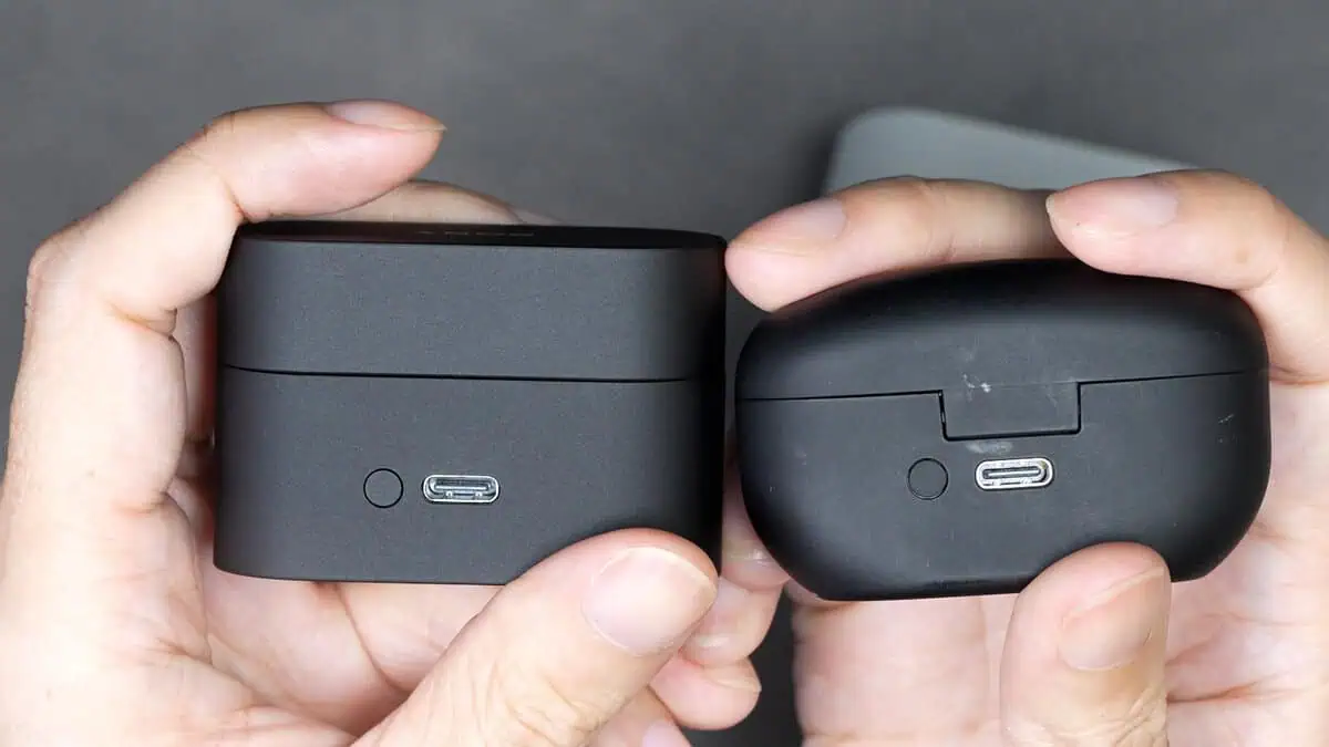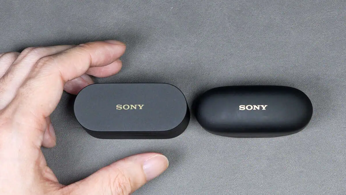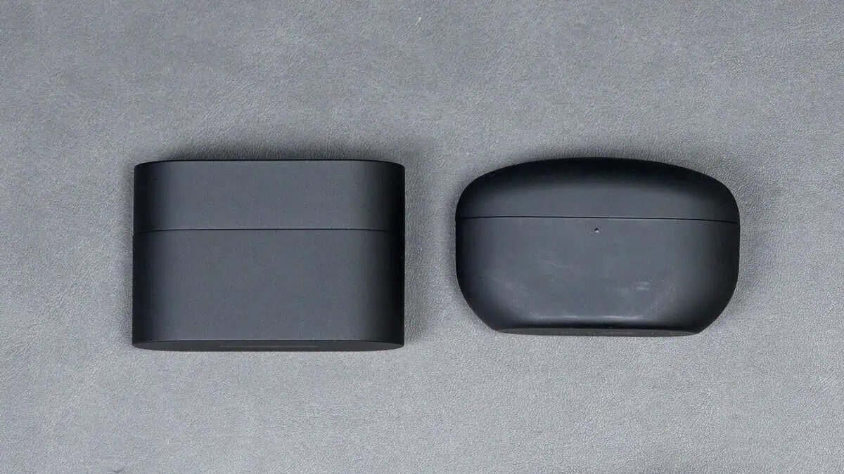 WF-1000XM5と充電ケースを比較するとこんな感じ。