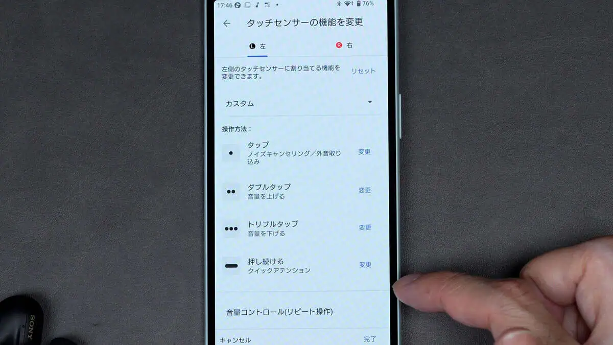 個人的には外音モードの切り替えが「1タップ」よりも「長押し」の方が好きなので、1タップを再生停止、L側の長押しを外音モード、右側の長押しをクイックアテンションで割り振ろうかなと思います。