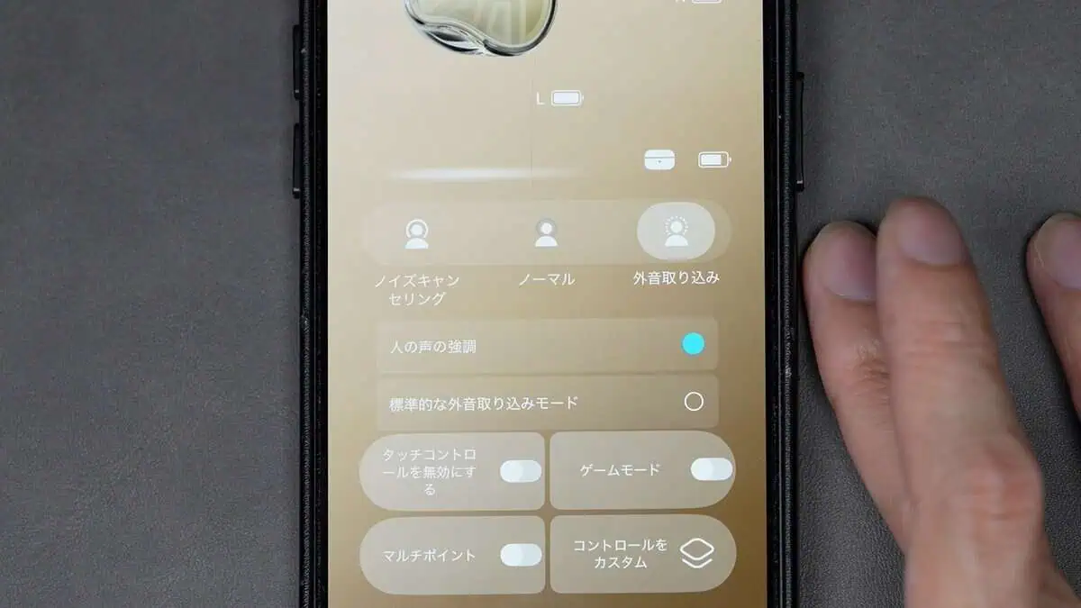 デフォルトでは標準的な外音取り込みモードになっていますが、人の声の強調の方がより自然に相手の声を聞き取りやすく感じましたね。