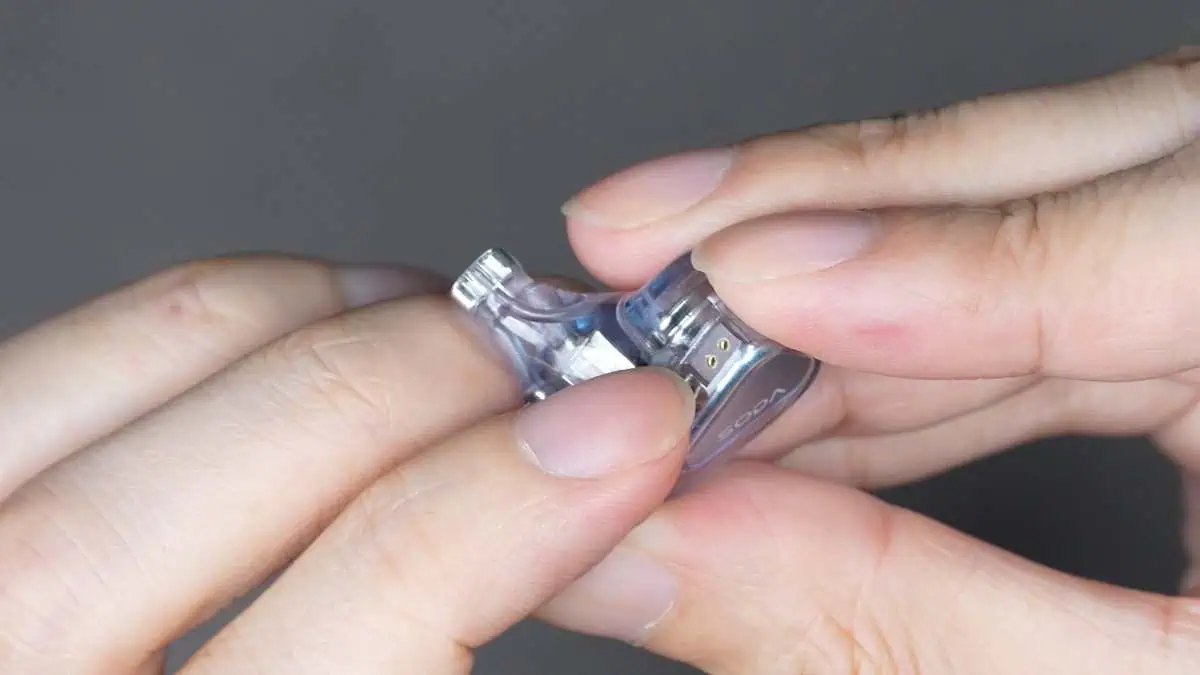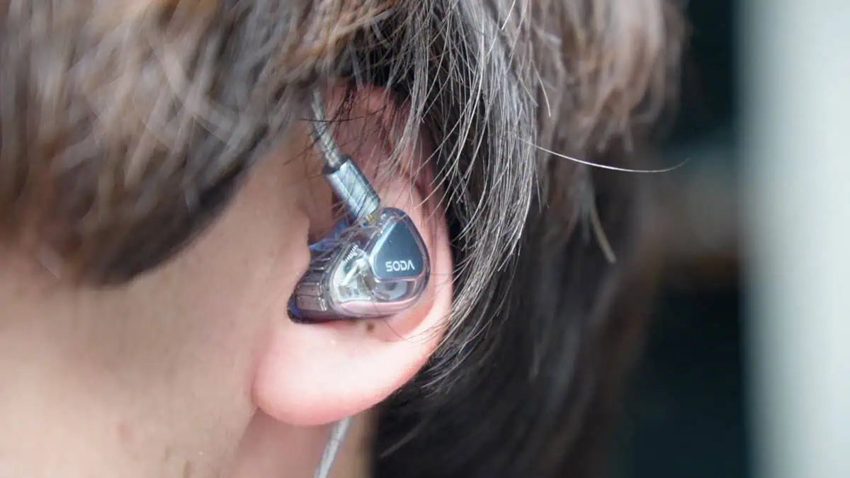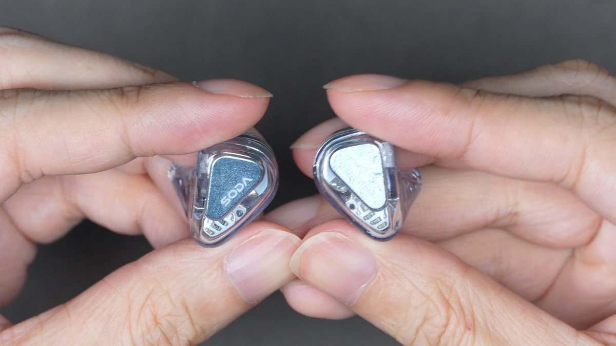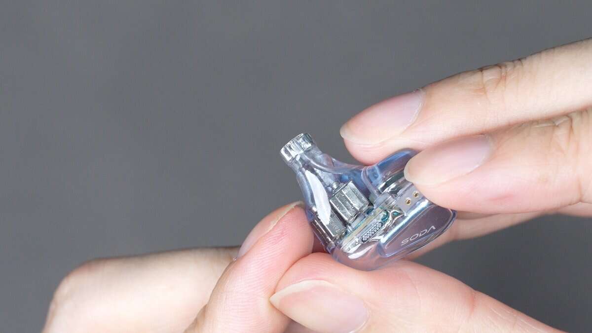 本体は今回は金属ではなく樹脂シェルでを採用。少しだけライトブルー色に彩られたSODAの名にふさわしい透明感のあるデザイン。