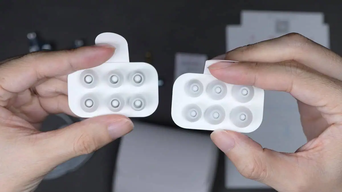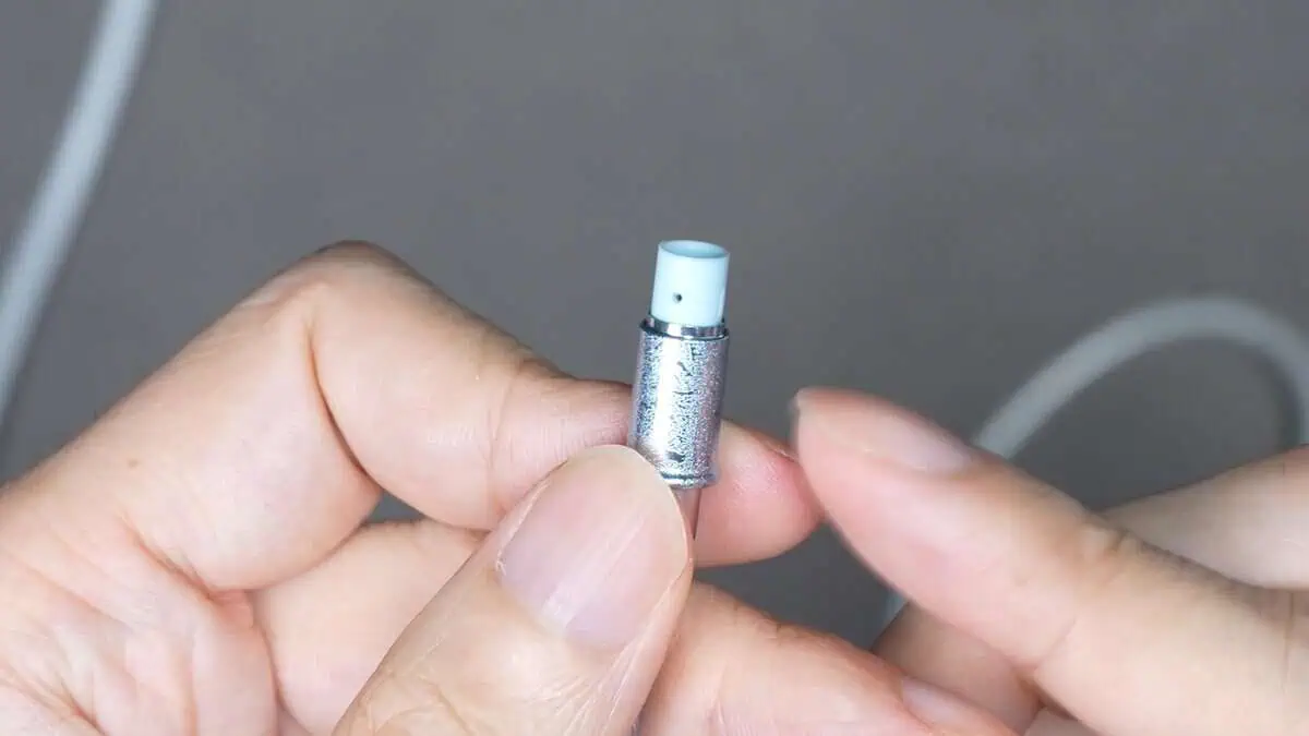 イヤーピースは高域寄りと低域寄りのもの2つが付属。開口部が広い方が高域、狭い方が低域向けとなっています。今回は高域寄りのものを使用しましょうかね。