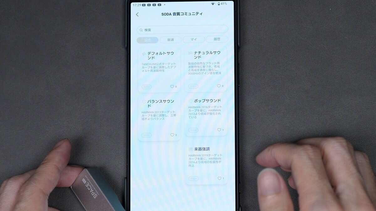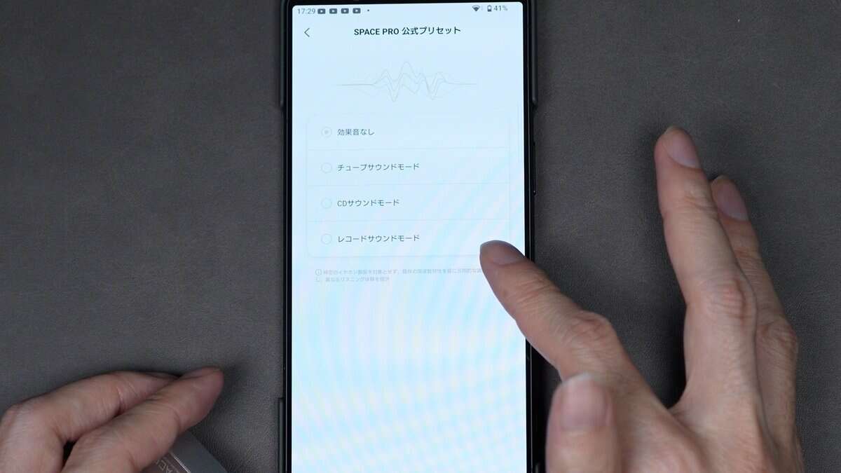 SPACE PRO公式プリセットとして「チューブサウンドモード」「CDサウンドモード」「レコードサウンドモード」の3つが用意されています。
