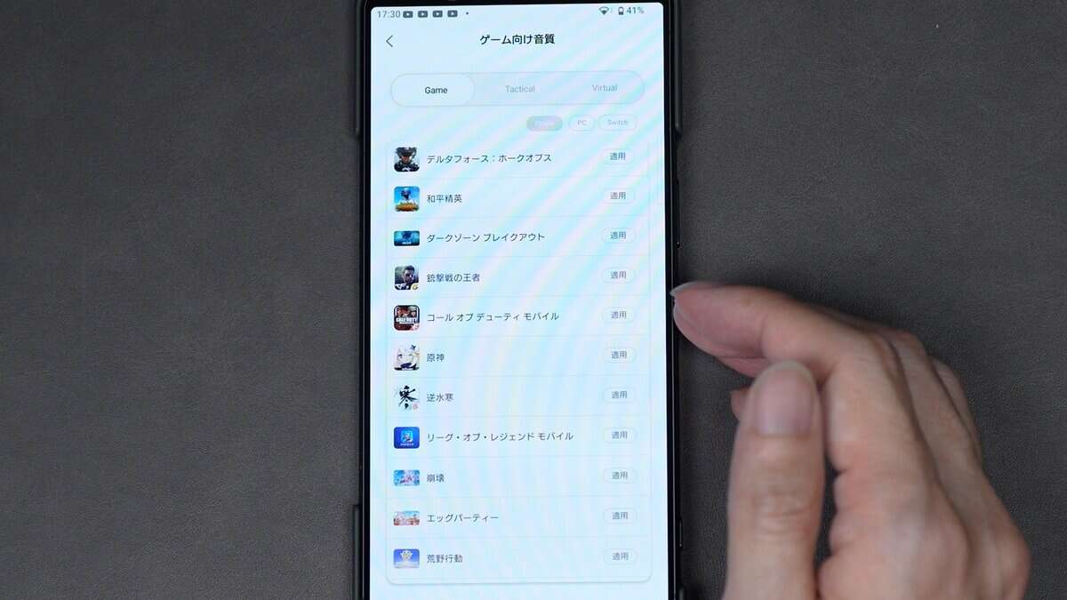 ゲーム向け音質では「コールオブデューティーモバイル」や「原神」など、各ゲームに最適化したイコライザー設定も用意されています。