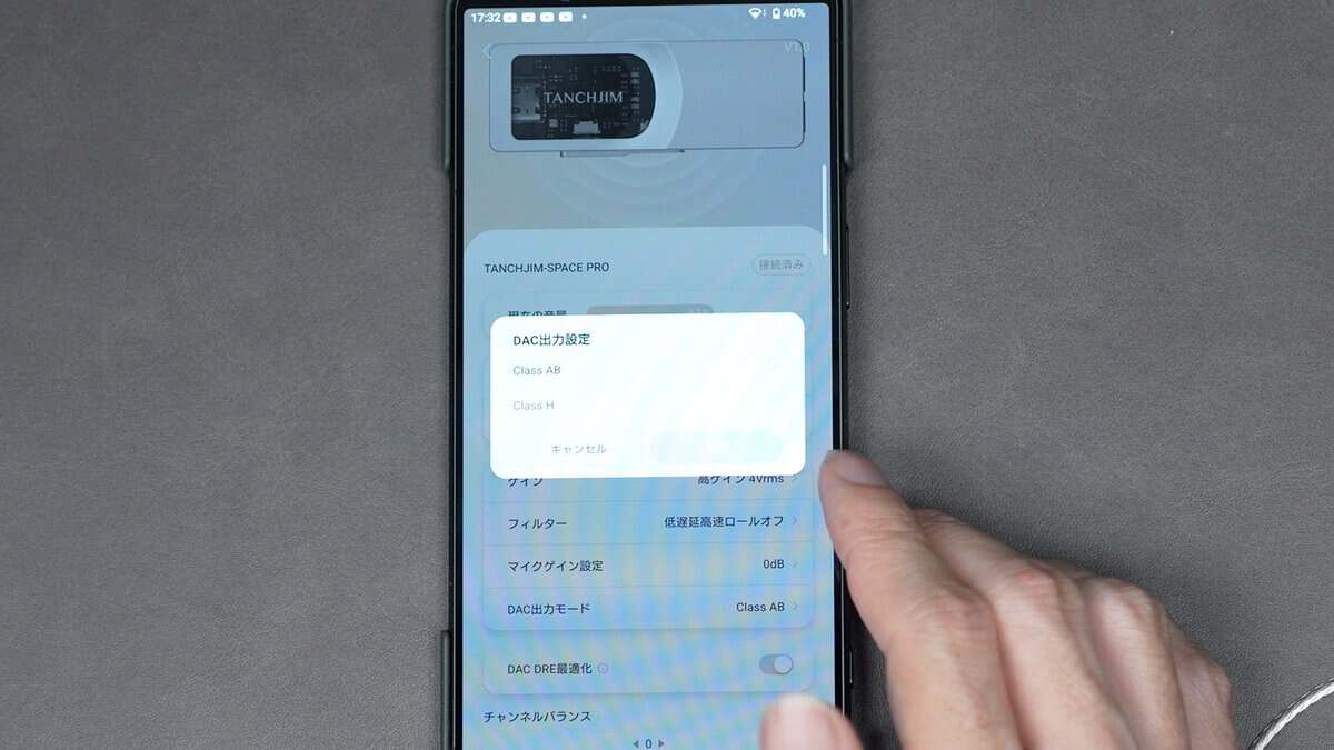 DAC出力モードも「Class AB」と「Class H」から選べます。こちらはLUNAにもあった設定ですね。