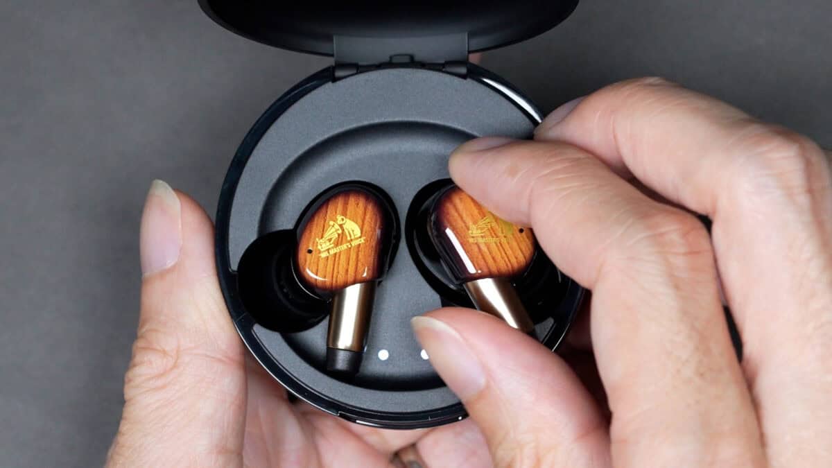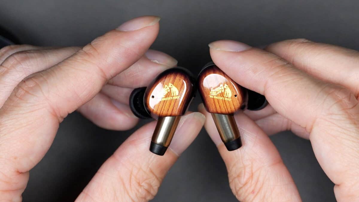 イヤホン本体は、楽器モチーフの高級感と実用性のバランスを狙ったデザイン。ふつうにかっこいい。犬のニッパーくんのロゴもワンポイントとなっておしゃれ。