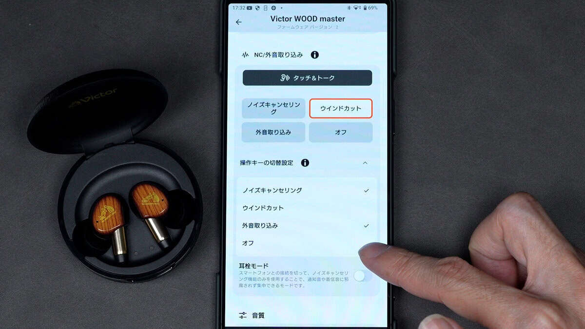 • ノイキャン/外音/ウインドカット/OFFなどのモード制御