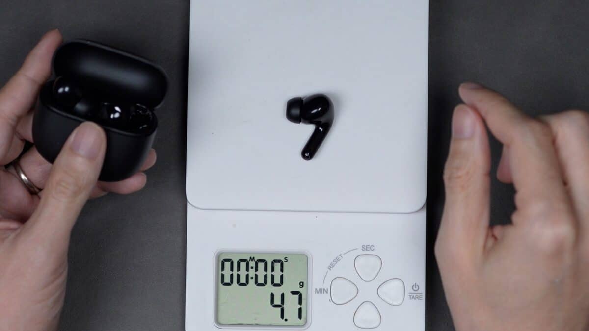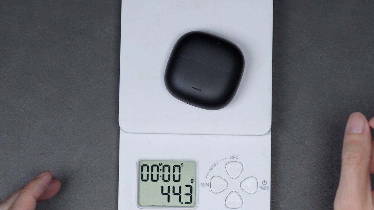最後に重さですが、総重量は44.3g、本体片耳の重量は4.7gです。