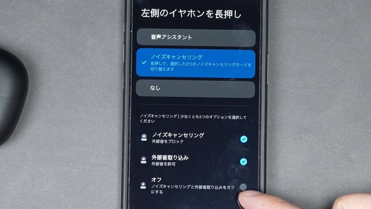 ボクはノイズキャンセリング搭載モデルは「ノイズキャンセリング↔️外音取り込み」の2モードでのみ切り替えたいのですが、OFFをカットする機能は安いモデルだと搭載されていないことがほとんど。