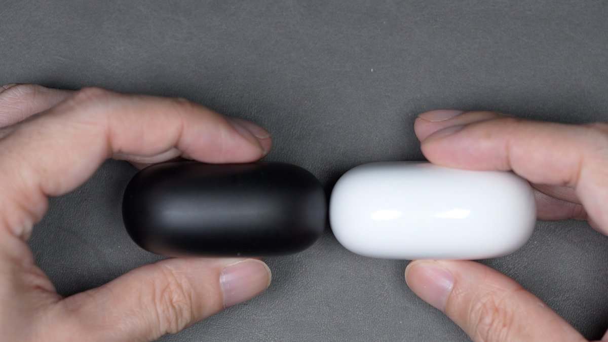 充電ケースについて、ホワイトとブラックによる配色の違いはありますが、REDMI Buds 6 Liteと形状はほぼ変わらず。